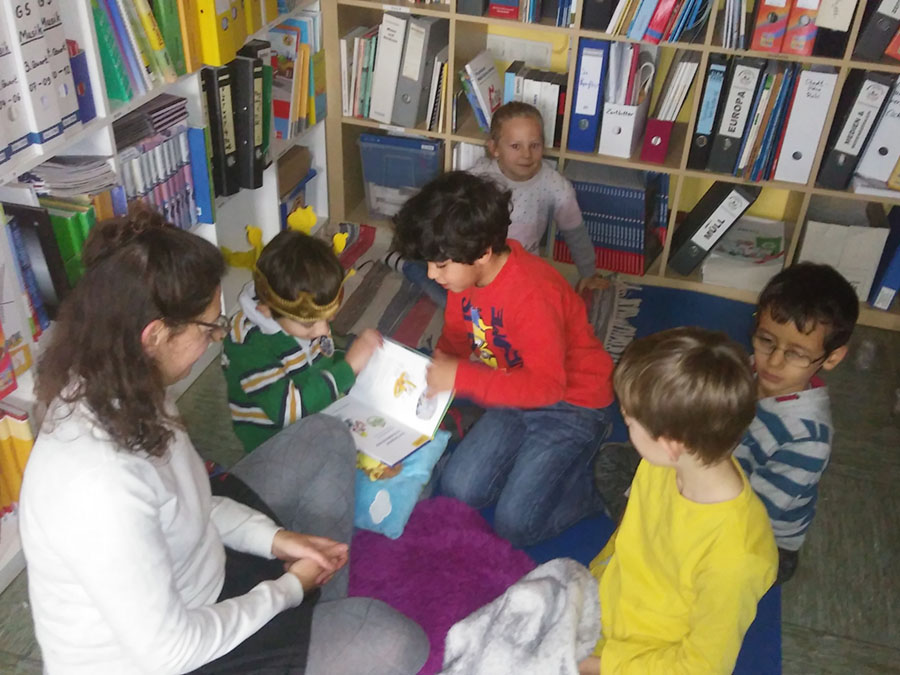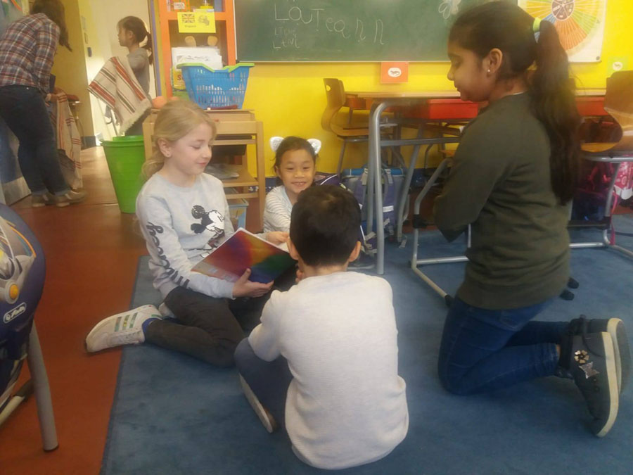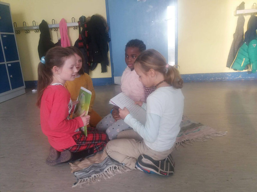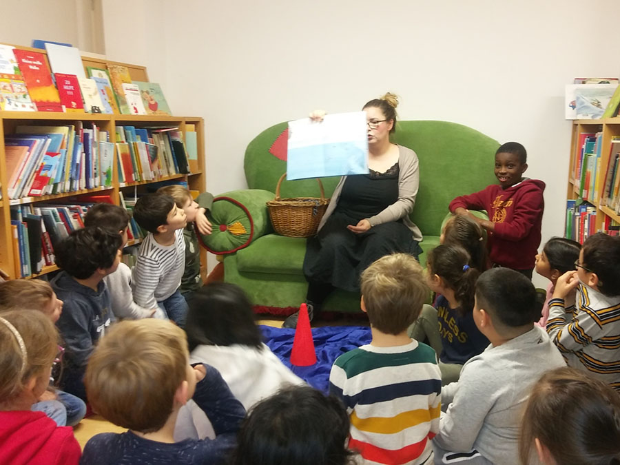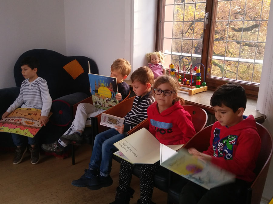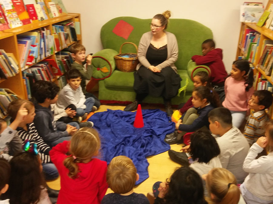 An die englische Vorleseaktion schloss sich die Lesewoche der Erstklässler an. Sie sollten vor allem erfahren, wie wundervoll Lesen ist. Einen Reigen von Lesungen eröffnete das Buch „Ein Geräusch, wie wenn einer versucht kein Geräusch zu machen“ von John Irving. Es zog die Kinder im Bilderbuchkino in seinen Bann. Viele Eltern unterstützten uns in dieser Woche, die unter dem Motto „Gruseln – schaurig schön“ stand, und kamen in die Schule, um in Gruppen oder im Plenum ihre Gruselgeschichten in gemütlicher Runde vorzutragen. Auch die Paten kamen einen Vormittag zu uns, um uns selbst erfundene Gruselgeschichten vorzulesen. Den Höhepunkt der Woche bildete der Besuch des Bilderbuchmuseums in der Burg Wissem in Troisdorf – immer wieder eine Reise wert und vielleicht auch ein Tipp für einen Familienausflug. Neben all diesen Aktivitäten kamen auch eigene Leseversuche und Schmökerzeiten nicht zu kurz – und so können nun alle unsere Erstis mindestens einfache Wörter, einige auch schon kleine Geschichten selber lesen. Herzlichen Glückwunsch!