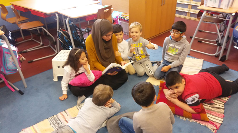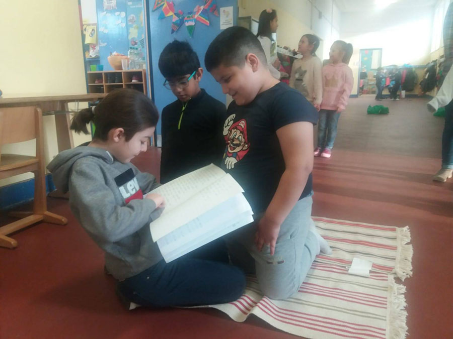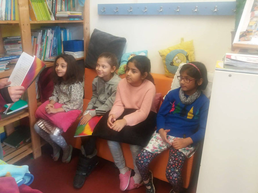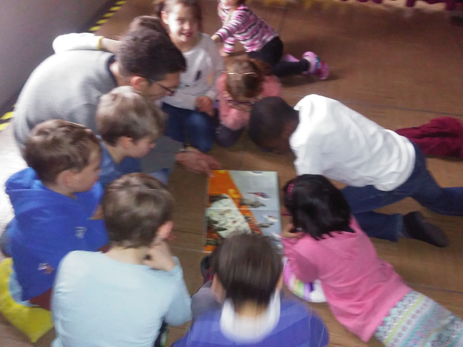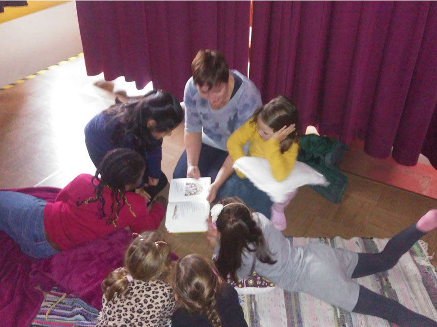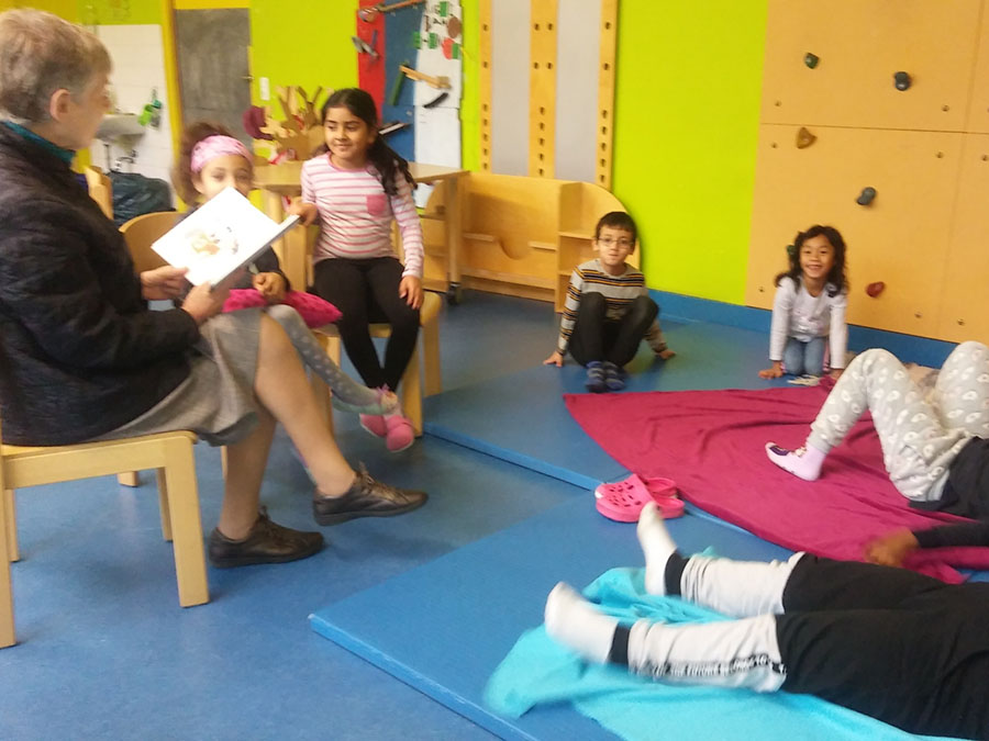 An die englische Vorleseaktion schloss sich die Lesewoche der Erstklässler an. Sie sollten vor allem erfahren, wie wundervoll Lesen ist. Einen Reigen von Lesungen eröffnete das Buch „Ein Geräusch, wie wenn einer versucht kein Geräusch zu machen“ von John Irving. Es zog die Kinder im Bilderbuchkino in seinen Bann. Viele Eltern unterstützten uns in dieser Woche, die unter dem Motto „Gruseln – schaurig schön“ stand, und kamen in die Schule, um in Gruppen oder im Plenum ihre Gruselgeschichten in gemütlicher Runde vorzutragen. Auch die Paten kamen einen Vormittag zu uns, um uns selbst erfundene Gruselgeschichten vorzulesen. Den Höhepunkt der Woche bildete der Besuch des Bilderbuchmuseums in der Burg Wissem in Troisdorf – immer wieder eine Reise wert und vielleicht auch ein Tipp für einen Familienausflug. Neben all diesen Aktivitäten kamen auch eigene Leseversuche und Schmökerzeiten nicht zu kurz – und so können nun alle unsere Erstis mindestens einfache Wörter, einige auch schon kleine Geschichten selber lesen. Herzlichen Glückwunsch!
