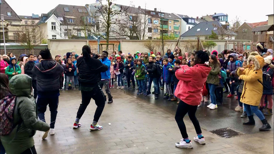Beendet wurde die Projektwoche mit einem etwas anderen Abschlussfest. Ganz Riehl hatte die Chance bei unserem Straßenfest vor der Schule die Tanz- und Trommelchoreographien der Kinder, die sie in den Workshops gelernt haben, zu bestaunen. Ein Highlight dieses Festes war die Aufführung der ostafrikanischen Künstler höchstpersönlich. Die zahlreichen Spenden, freudigen Gesichter und die tolle Atmosphäre ließ jeden den vollen Erfolg dieser außergewöhnlichen Projektwoche spüren.