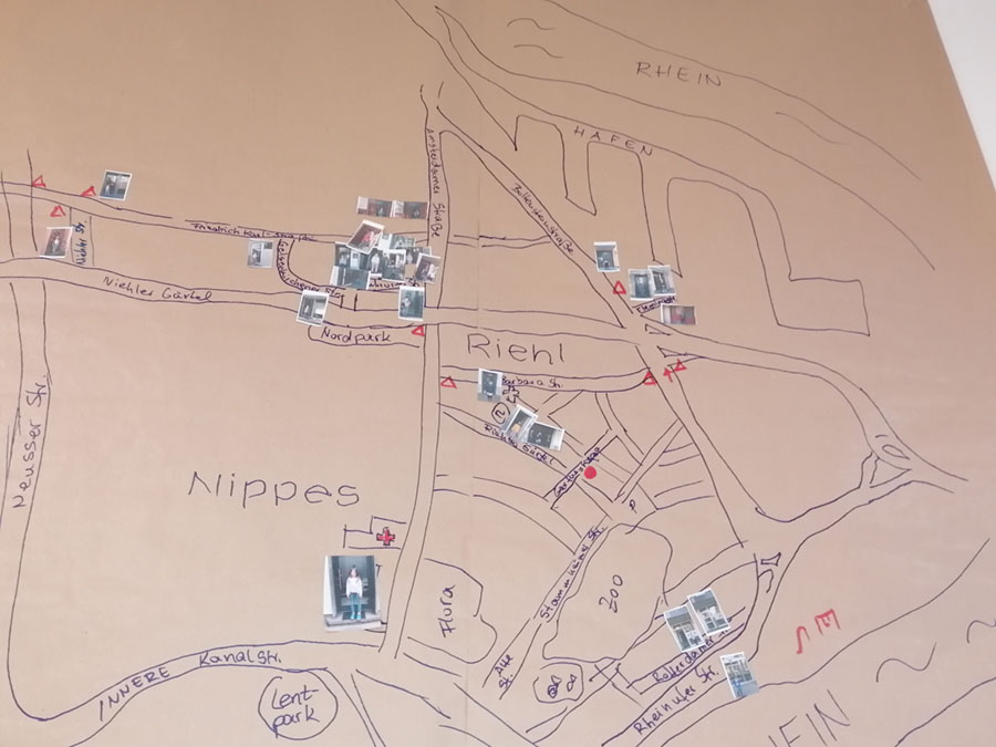 gemeinsam einen Stadtplan, vollzogen ihren Weg nach und klebten die Fotos