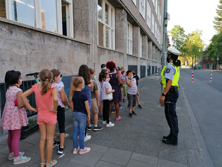 Verkehrssituation vor der Schule genau.