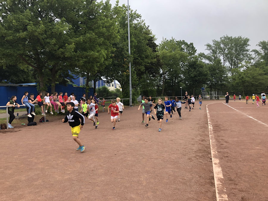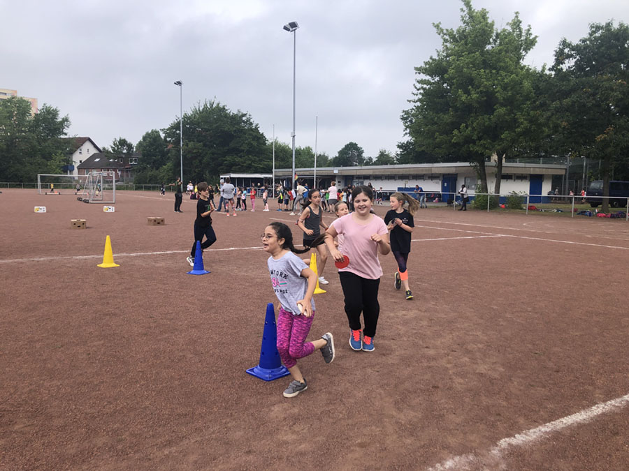 Endlich wieder eine gemeinsame Schulaktion! Nach einer langen Coronapause hofften die Kinder der GGS auf gute Bedingungen bei den Bundesjugendspielen. Die vier Disziplinen – Weitsprung, Weitwurf, 50m-Sprint und der 800m-Lauf - stehen für die 3. und 4.Klässler auf dem Programm. Aber auch die kleinen Leichtathleten aus Klasse 1 und 2 messen sich in ihrem etwas spielerischerem Wettbewerb. Zum Abschluss werden alle für ihre Leistungen mit Urkunden belohnt. Danke für die Unterstützung des DJK-Löwe und der vielen Elternhelfer. Gemeinsam hatten wir einen fröhlichen und sportlichen Tag!