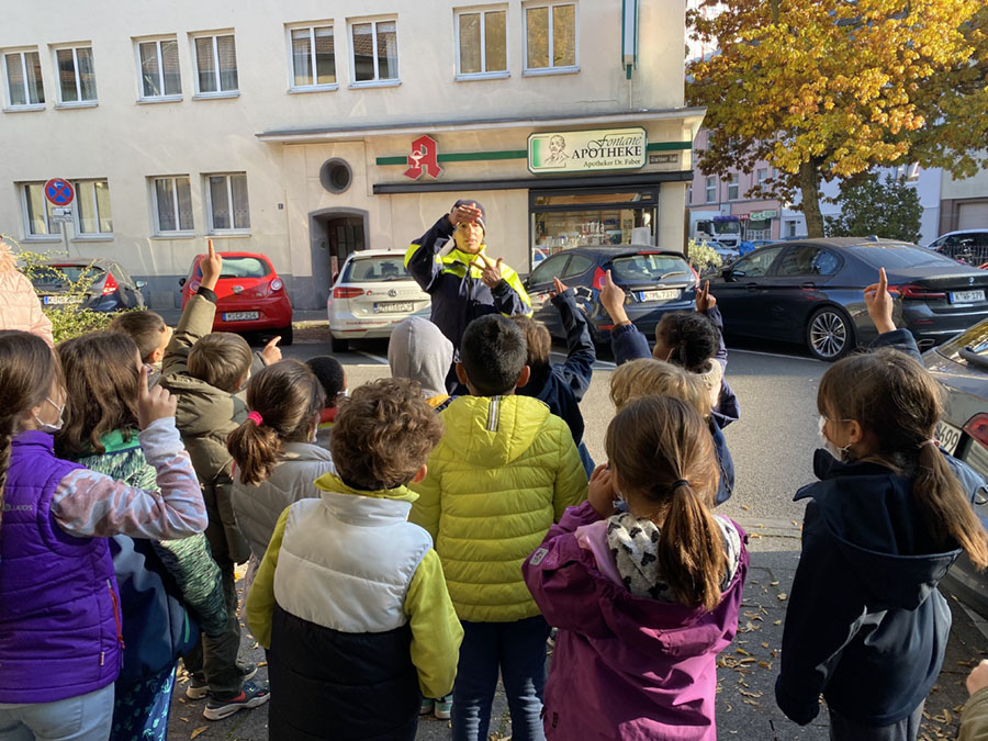 Heute war Frau Schleifer von der Polizei bei den Ottern, Pinguinen und Robben zu Besuch. Nachdem besprochen wurde, was genau eine Polizistin ausmacht und wie man sie erkennt, ging es endlich raus auf die Straße. Rund um unsere Schule haben wir wichtige Verhaltensregeln im Straßenverkehr gelernt: Wie überquert man eine Ampel und einen Zebrastreifen bzw. Fußgängerüberweg sicher? Woran erkennt man, dass ein Auto wirklich steht? Was darf ich eigentlich alles auf dem Bürgersteig und wann darf ich sogar auf der Straße spielen? Ein Kind nach dem anderen durfte ganz alleine die Straße überqueren und nur selten musste Frau Schleifer noch helfen. Vielen Dank Frau Schleifer für den spannenden Unterricht.