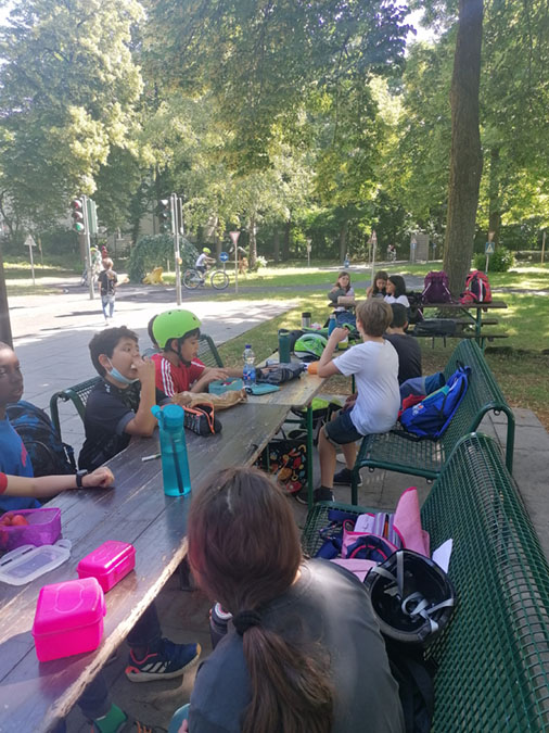 Salamander und Luchse besuchten die Jugendverkehrsschule, um durch praktisches Lernen im geschützten Raum noch fitter im Straßenverkehr zu werden. Während die einen ihre Runden drehten, waren die anderen als kleine Verkehrspolizist:innen unterwegs und wiesen auf Nachlässigkeiten und Regelverstöße hin. So konnten alle neue Erfahrungen sammeln. Die Termine für nächstes Jahr wurden heute schon gebucht. Im April 2023 wird dann die praktische Fahrradprüfung abgelegt.