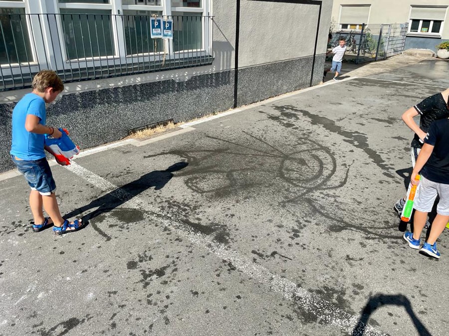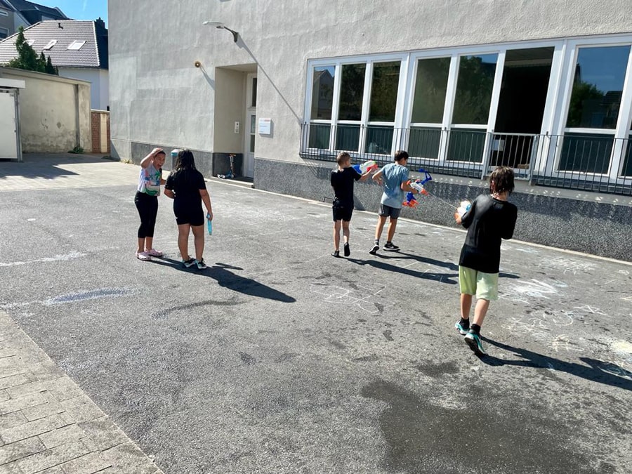 Drei Tage Schule, drei Tage Hitze. Bewegungszeit auf dem Schulhof? Zu heiß?! Nicht wenn Wasser dazu kommt.