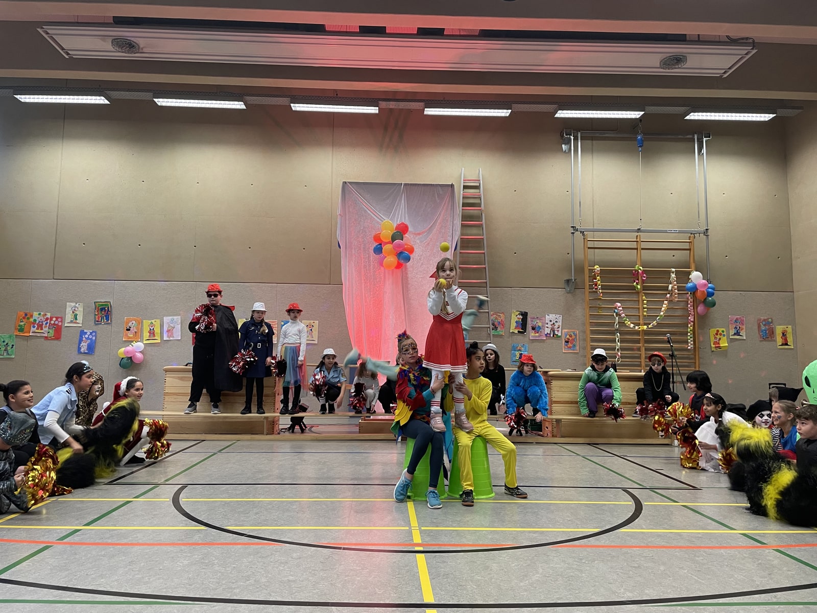 Es wurde gesungen, getanzt und gelacht, nicht zuletzt wegen des tollen Elferrats. Neben Fischen und Pferden haben alle Klassen mit ihren Auftritten für eine bunte Abwechslung gesorgt. Sogar Akrobatik stand in diesem Jahr auf dem Programm.