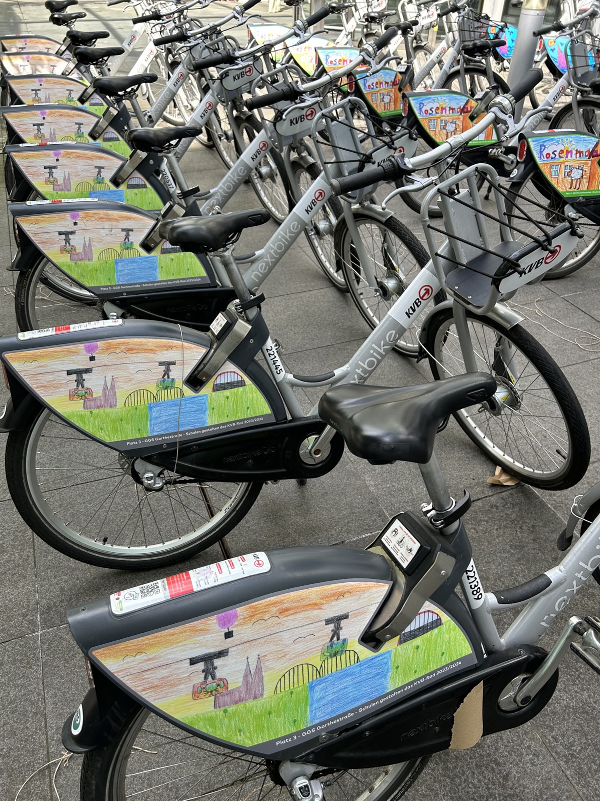 Ein besonders stolzer Moment für die GGS Garthestraße – die Rehklasse belegte den 3. Platz des Kunstwettbewerbes der Kölner Verkehrsbetriebe! Die 4. Klassen ließen sich von ihrem Veedel inspirieren und setzten die Kölner Seilbahn ins Zentrum ihrer Bilder. Im Kunstunterricht malten die Kinder fleißig die Seilbahn und all die Kölner Sehenswürdigkeiten, die bei einem Ausflug mit der Seilbahn bestaunt werden können. Ziel der Kinder war es, den Benutzer:innen der KVB-Räder, auf eine Fahrt mitzunehmen und auf einem Blick zu zeigen, was unsere Stadt alles für schöne Ziele zu bieten hat. Die Preisverleihung fand Ende Mai in der KVB-Zentrale in Braunsfeld statt. In einer feierlichen Zeremonie wurden die Kinder geehrt und durften zum krönenden Abschluss, die ersten Fahrräder enthüllen, die mit den selbstgemalten Bildern der Kinder bedruckt worden waren. Wir sind sehr stolz auf unsere Schüler:innen und freuen uns schon darauf, mit den Fahrrädern der GGS Garthestraße rund um Köln zu radeln.