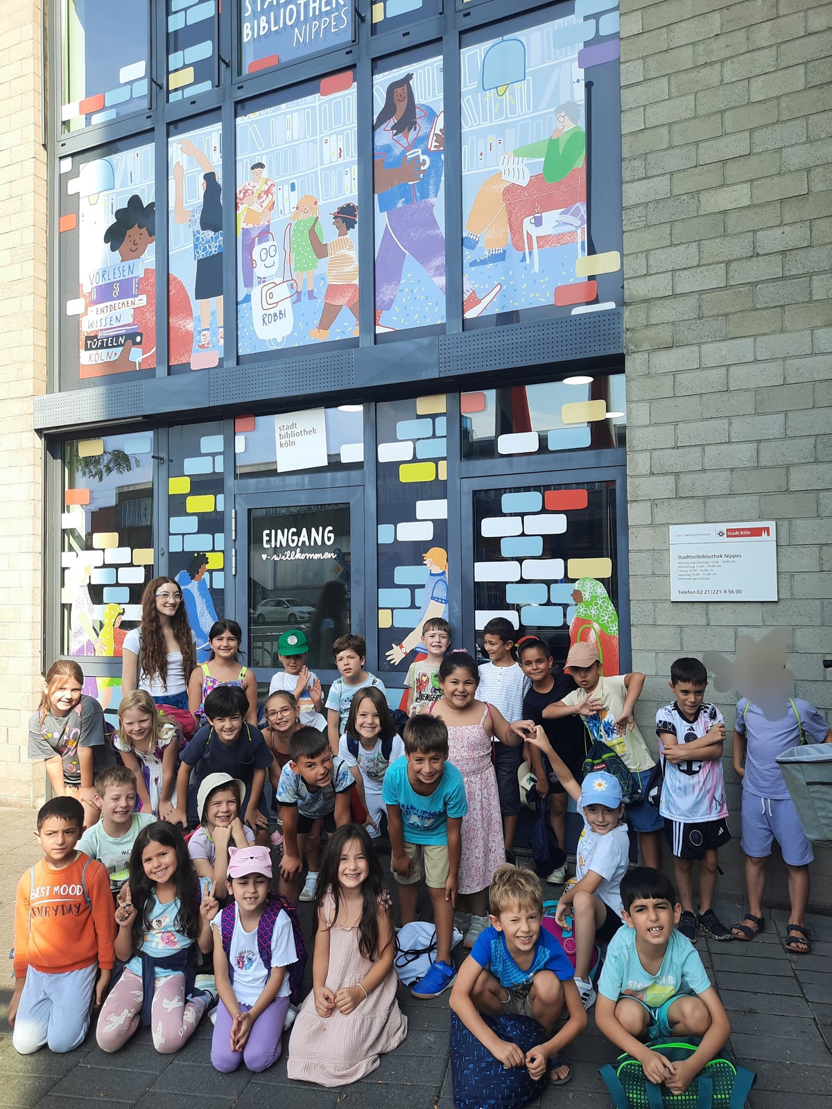 Wir waren in der Bücherei und haben Bücher gelesen. Und wir haben über die Regeln dort gesprochen. Der Mann hat uns erzählt, dass Leute schonmal Pizza da gegessen haben. Er hat uns eine Fehlergeschichte vorgelesen und wir mussten die Fehler finden. (Anonymer Hai)