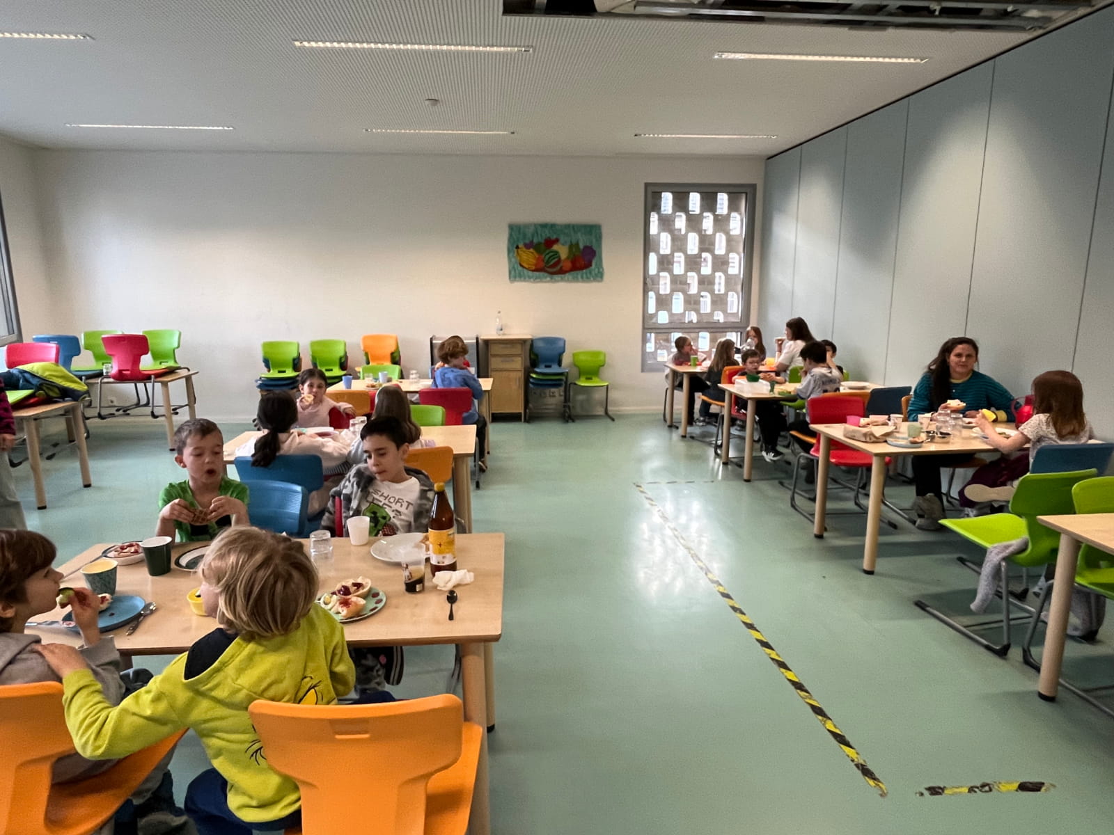 Nach dem Anziehen, Zähneputzen und Aufräumen startete der Morgen mit etwas Frühsport in der Turnhalle. Anschließend wurden alle in der Mensa von den Eltern mit einem leckeren und ausgiebigen Frühstück versorgt, bevor die Kinder nach und nach abgeholt wurden.