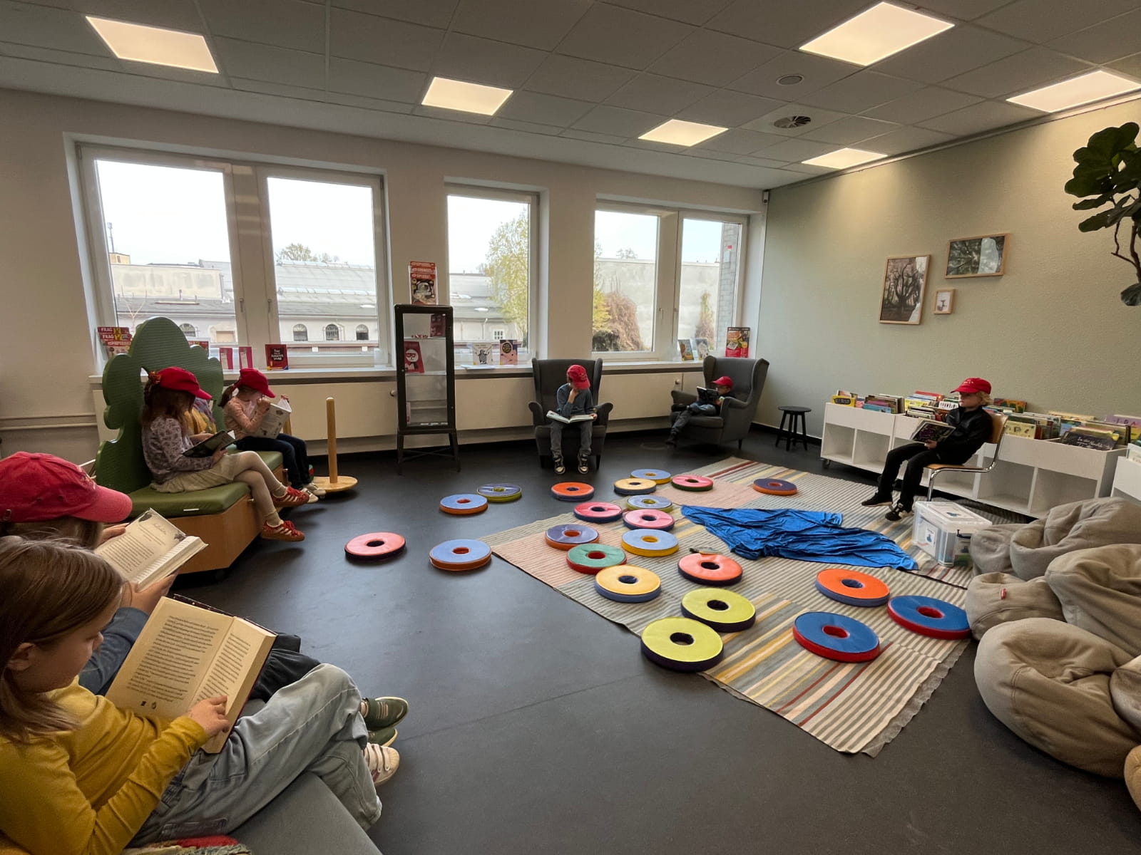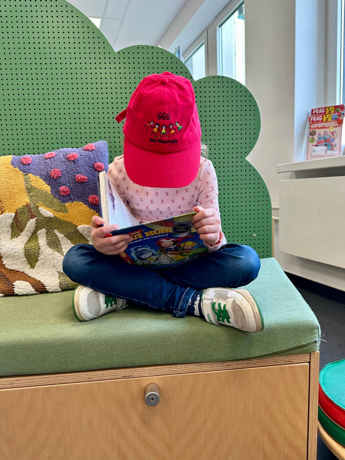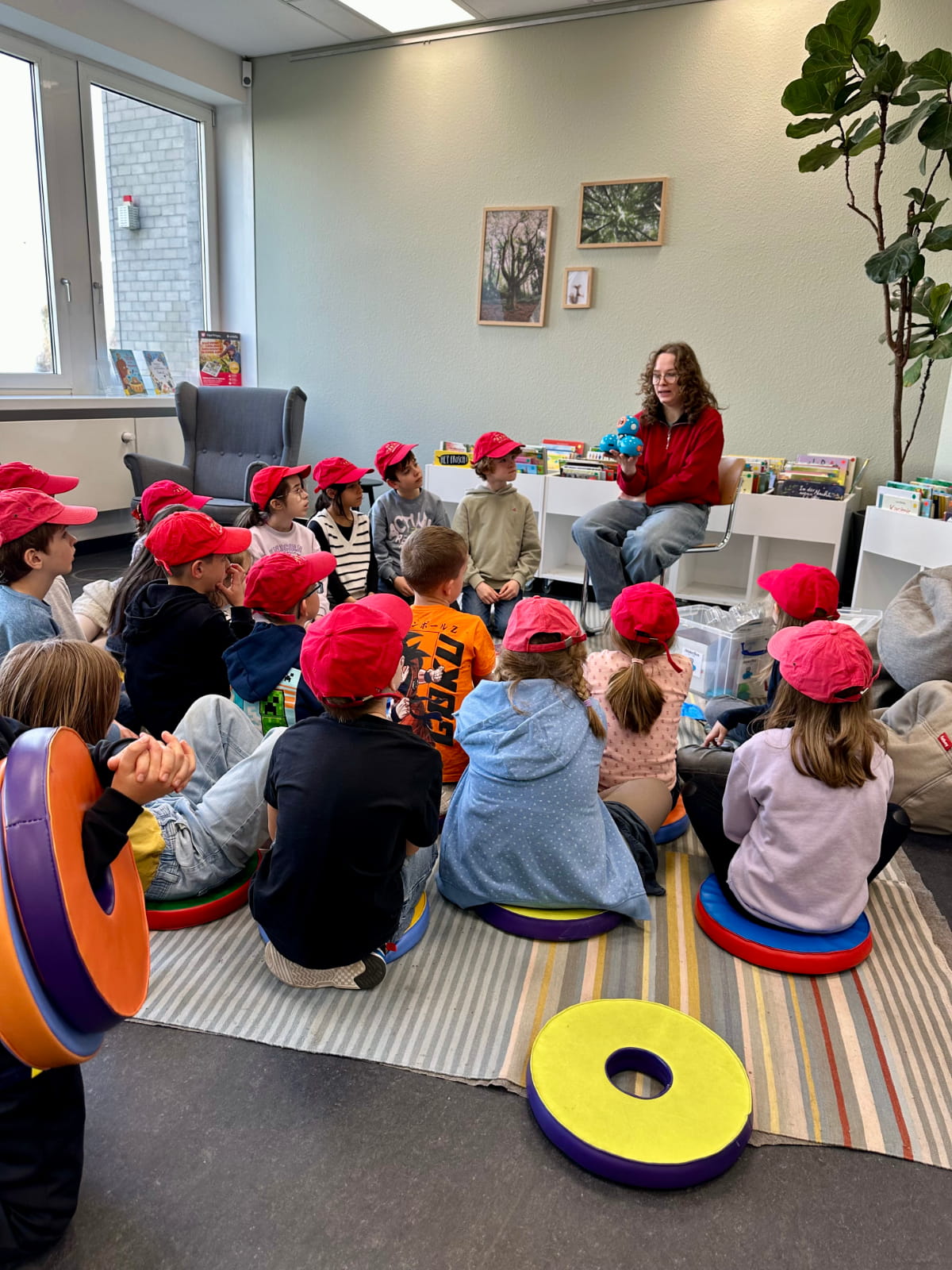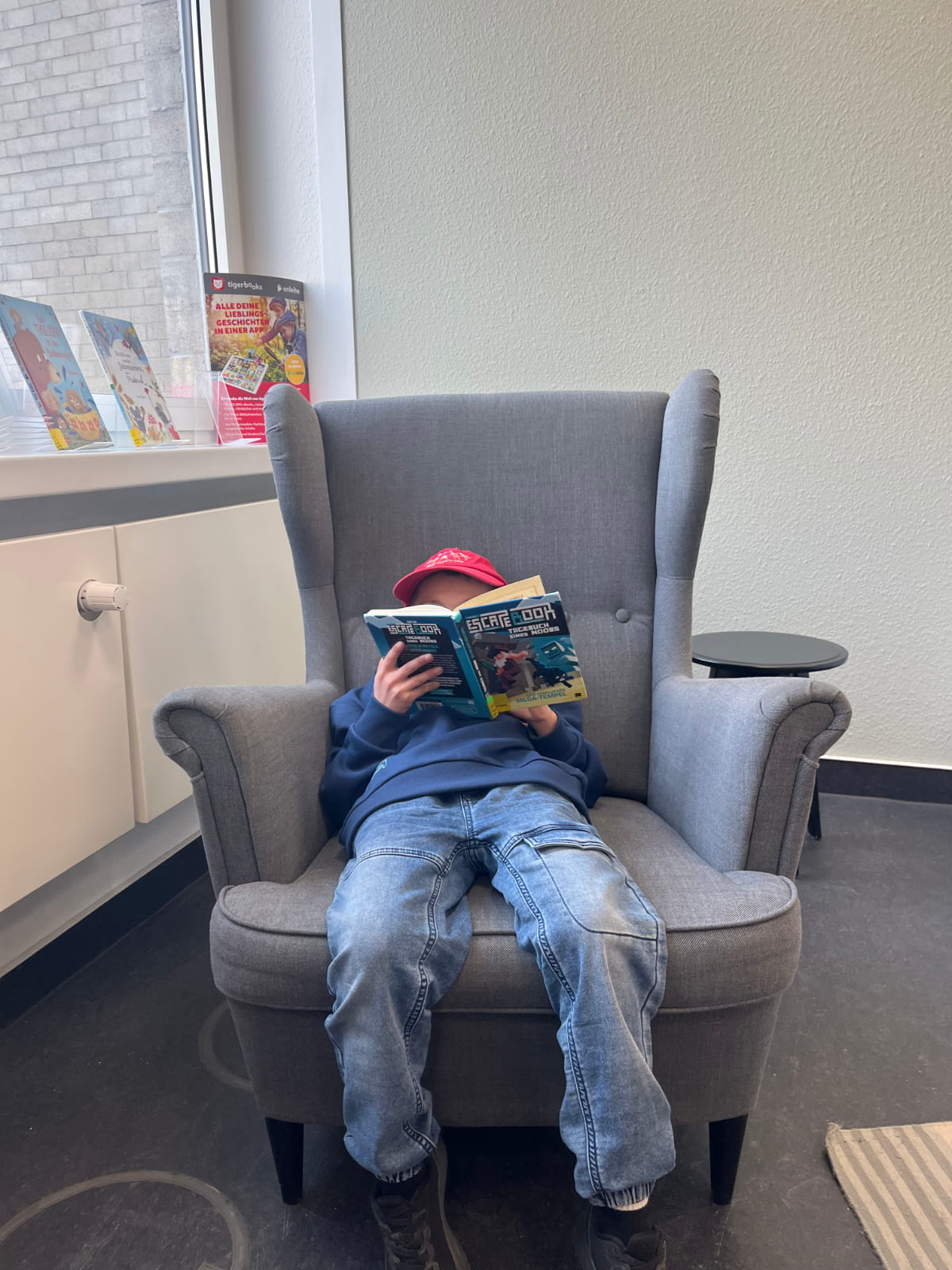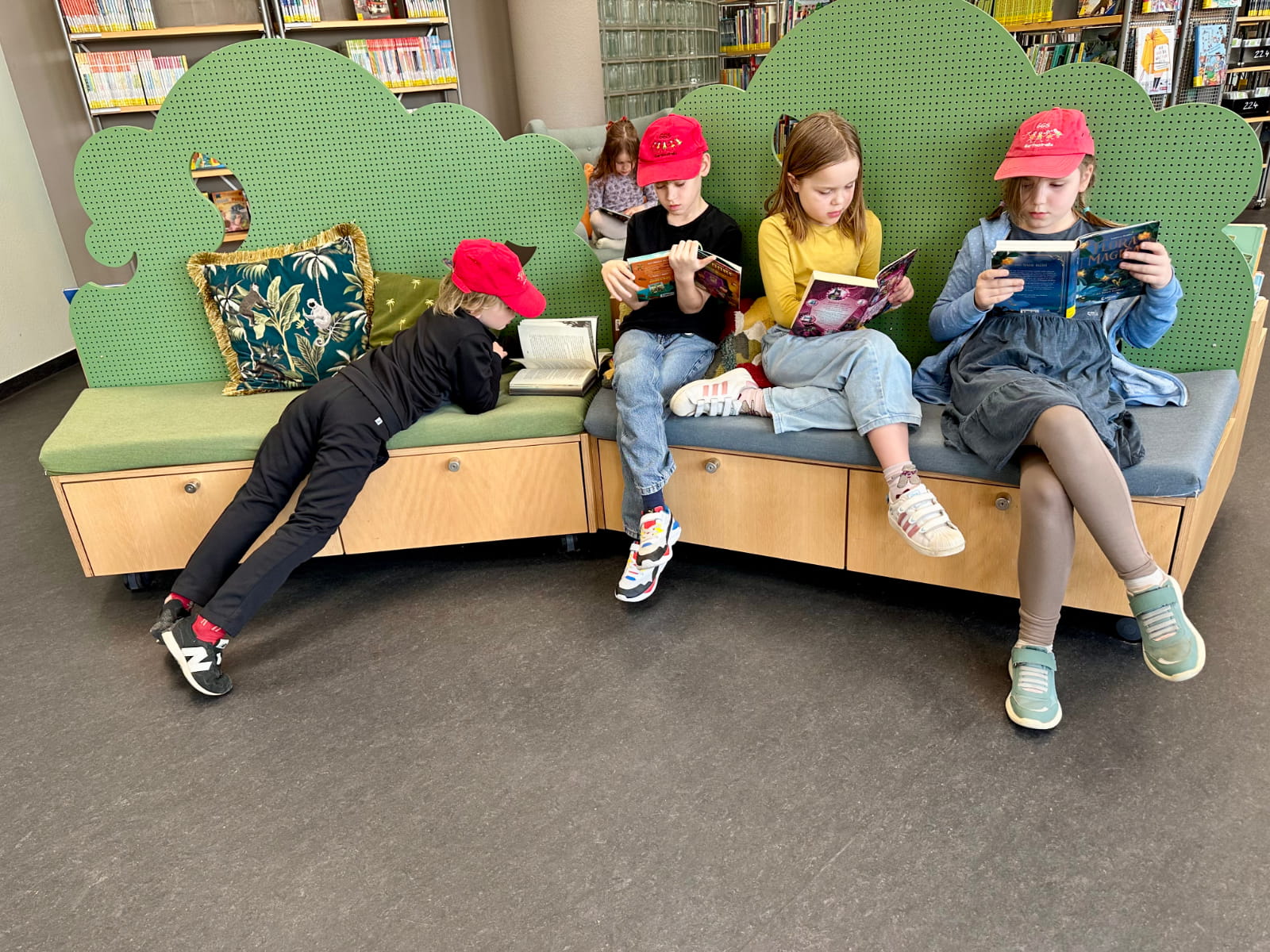 Nach der Führung blieb noch Zeit, die Bibliothek selbst zu erkunden. In den gemütlichen Sitzecken konnten die Kinder in Ruhe schmökern und erste Lieblingsbücher entdecken.